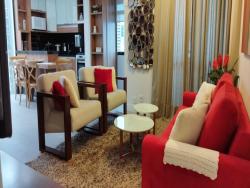 Este apartamento não só oferece móveis e eletrodomésticos de qualidade, incluindo camas de casal, sofá, poltronas, TV, geladeira e filtro de água, mas também duas vagas de garagem para sua conveniência.
