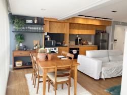 A sala integrada com a varanda gourmet proporciona um espaço amplo e agradável para receber amigos e familiares. A cozinha em conceito aberto, planejada e equipada, é perfeita para quem gosta de cozinhar e interagir durante as refeições.