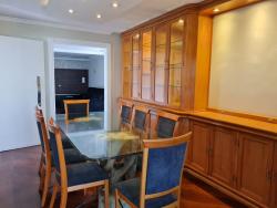 Varanda para momentos relaxantes ao ar livre, sala de jantar com cristaleira e armários para jogos de jantar, cozinha equipada com armários, área de serviço para praticidade no dia a dia. Quarto de empregada ou espaço para despensa, com banheiro. Aquecimento à gás e pia da cozinha com água quente para conforto em todas as estações, 3 vagas de garagem indeterminadas para toda a família, salão de festas para celebrar momentos especiais, portaria 24 horas terceirizada para segurança e tranquilidade, piscina aquecida para lazer e relaxamento, pequeno playground para diversão das crianças, academia em montagem para incentivar uma vida ativa e saudável