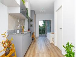 Um studio novinho, cuidadosamente planejado com móveis sob medida que otimizam cada centímetro do espaço. O piso laminado confere um toque acolhedor e sofisticado ao ambiente.