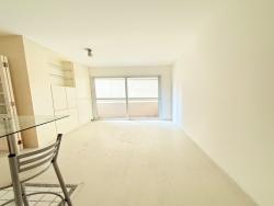 Apartamento com uma suíte, cozinha integrada e sacada.